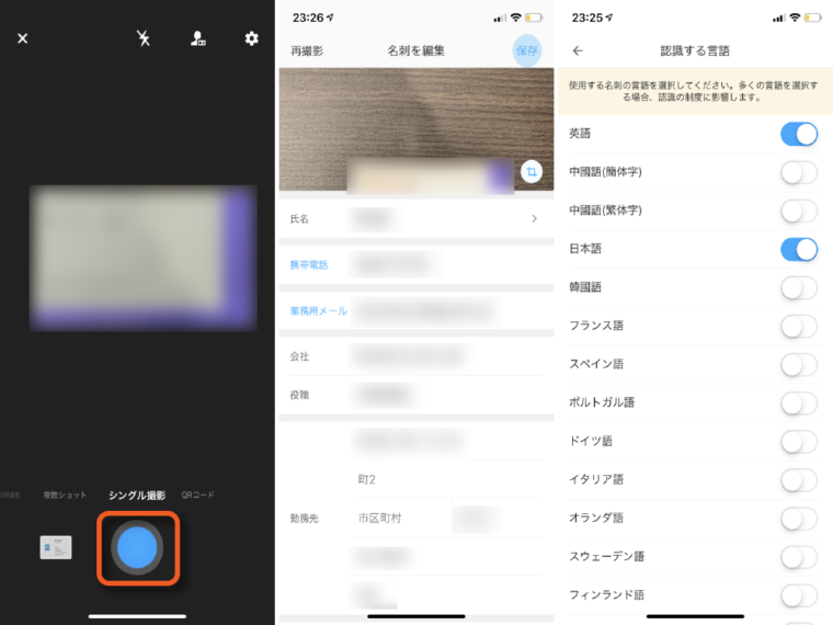 文字認識が16ヶ国もの言語に対応していたり、名刺データに細かいメモが入力できる点が優れています。