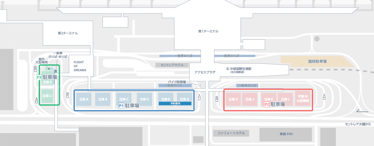 車で中部国際空港まで行った際は、空港内の24時間営業の駐車場を利用することができます。駐車場はP1・P2・P3・臨時駐車場の4つ用意されていて、収容台数は6700台です。
