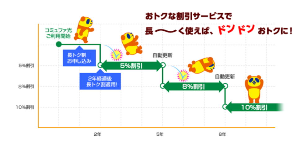 コミュファ光には、複数の割引サービスがあり「契約更新月」に解約すると解約金が0円です。