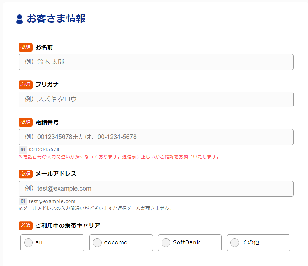 次に、お客様情報・連絡希望日を申し込みフォームに記入します。