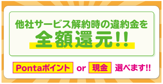 そのため、他社違約金を全額負担してもらいたい人におすすめです。