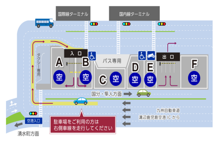 車・バイク専用の24時間営業の駐車場があります。鹿児島空港の公式サイトでは最新の駐車場情報が見れるので空き状況が確認できますよ。