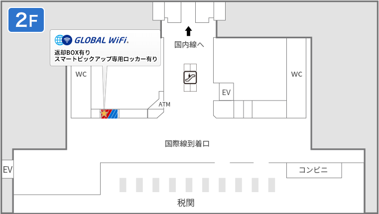 | 受け取り場所 | 国際線ターミナルの2階の国際線到着ゲートすぐ側(テレコムスクエア) |