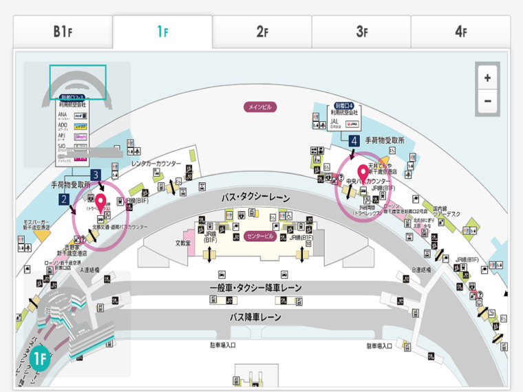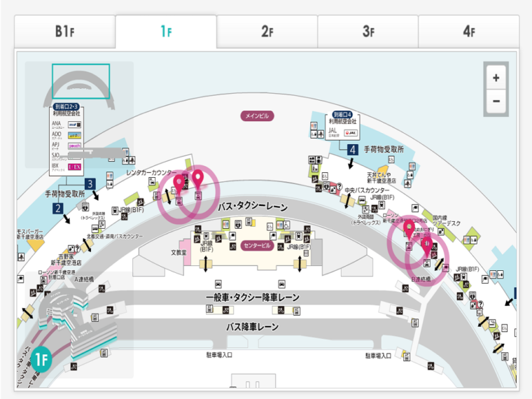 上の画像はグローバルWi-Fiの新千歳空港での受け取り・返却場所のマップになります。