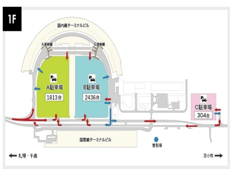 新千歳空港には空港ビルと直結している便利な駐車場が3つあります。24時間営業していて、収容台数は合わせて4,553台です。