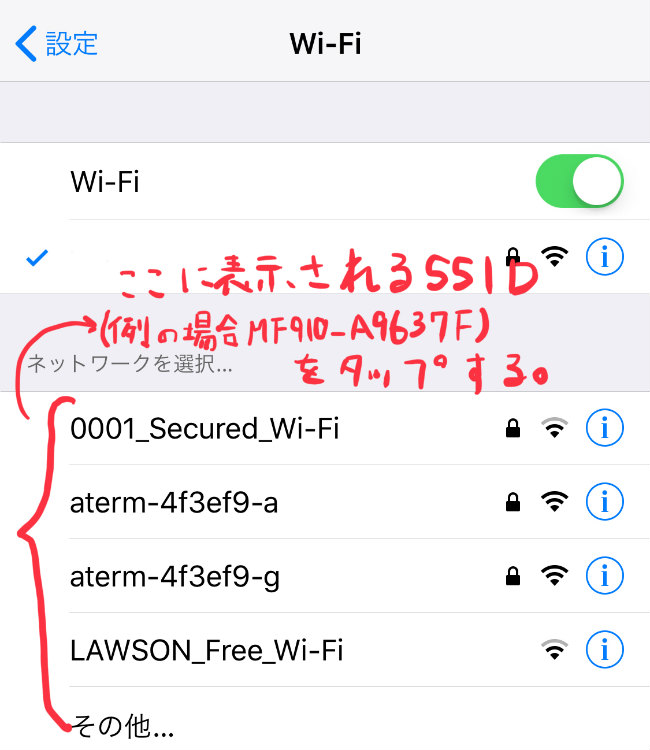 表示されているSSIDの中から、自分のレンタルWi-FiのSSIDをタップしてください。