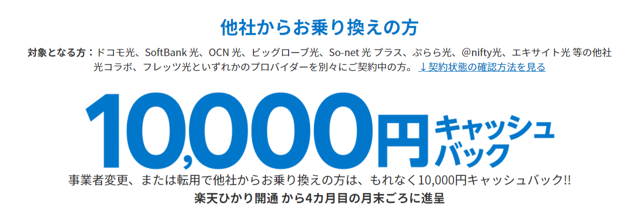 - 乗り換えで10,000円キャッシュバック