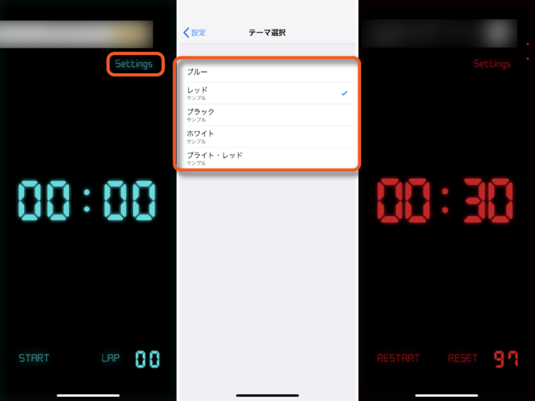 テーマは「設定」からいつでも変更することができます。ただし、デフォルトの「ブルー」以外を設定する場合は課金する必要があるので注意しましょう。