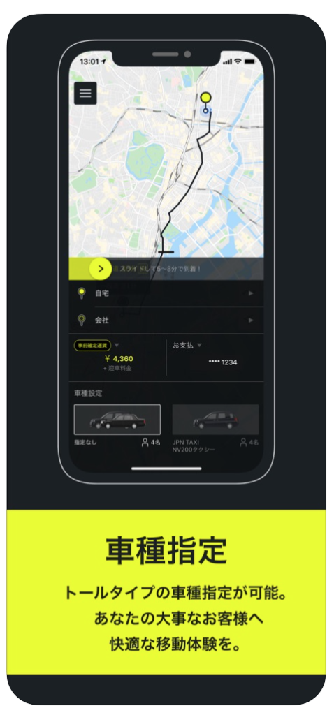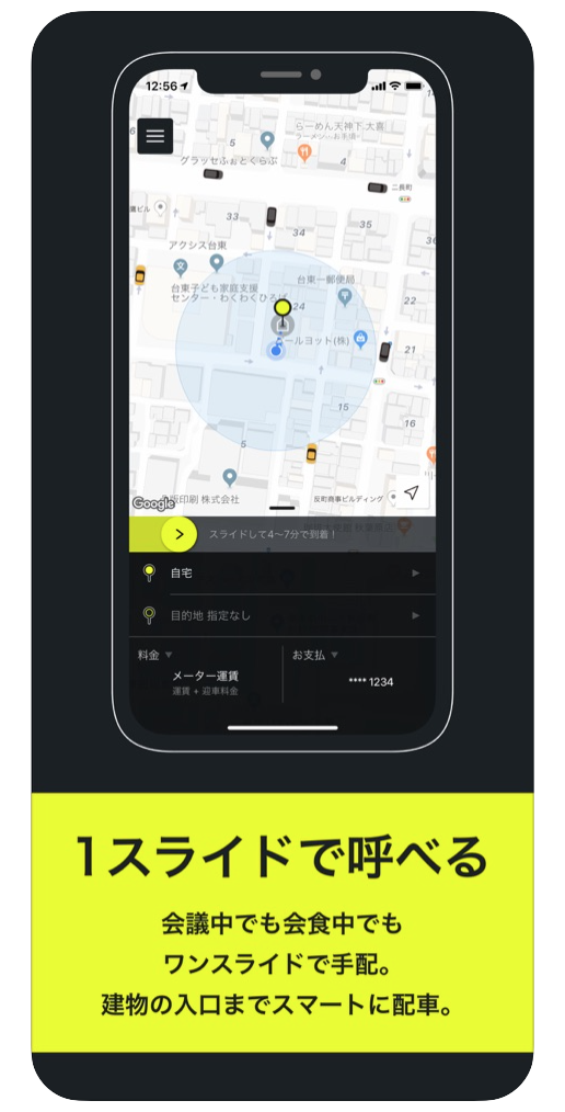 画面をスライドするだけで、簡単に配車が可能!