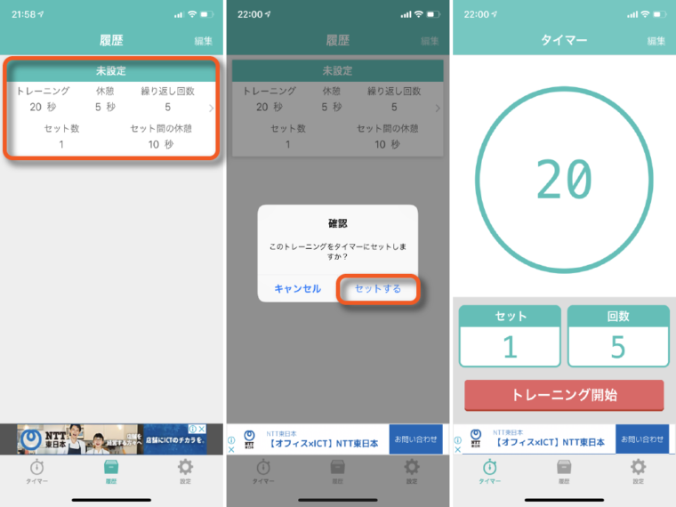 履歴からタイマーをセットすることができるので再度トレーニングメニューを編集から設定し直す必要はありません。切り替えがすぐにできるので、トレーニングがより充実したものになりますよ。