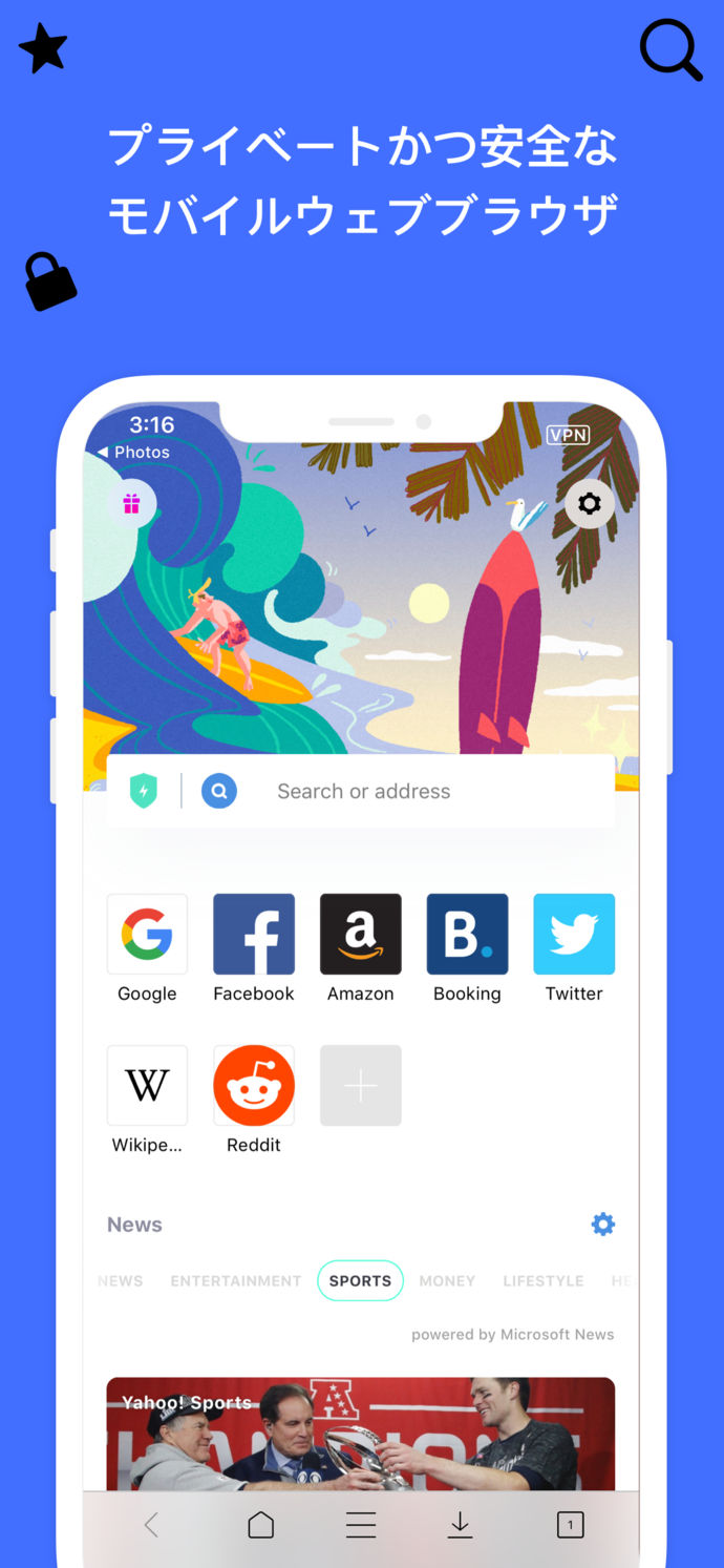 Aloha Browseを開くときだけ、プライバシーとセキュリティ保護してくれるVPNが有効になるため、登録や設定の必要がなく、気軽に始めることができます。