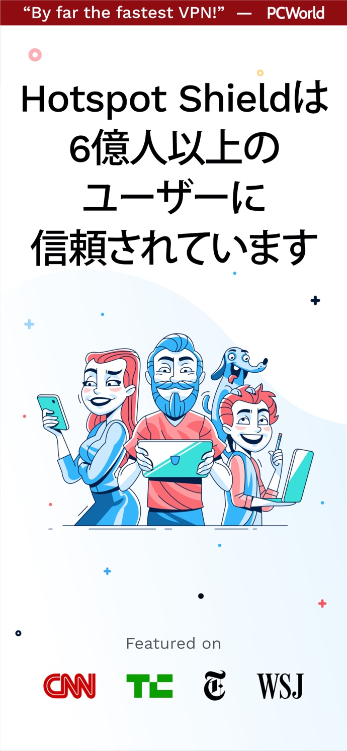 HotspotShieldは世界の6億人以上のユーザーに信頼されています!