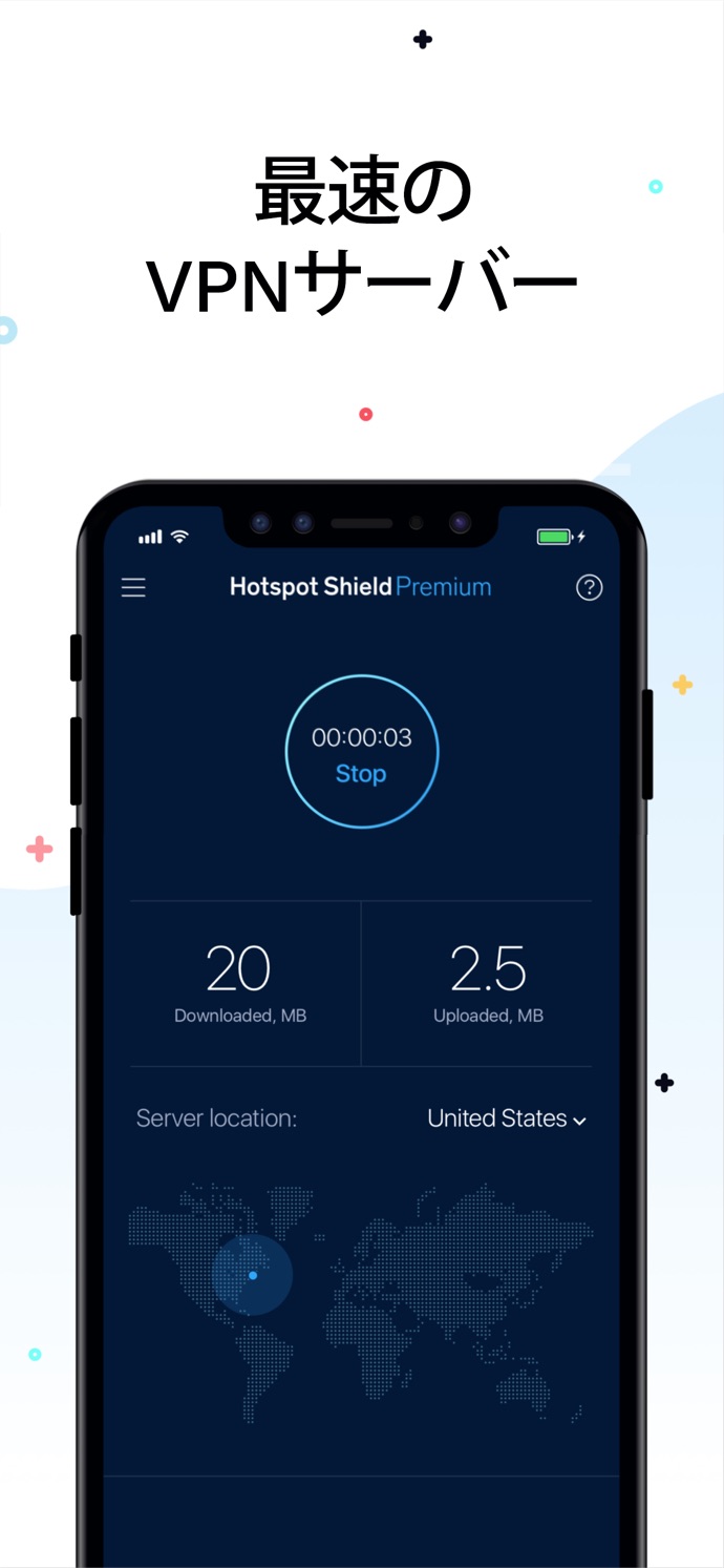 HotspotShieldがすべて所有するVPNサーバーに接続することで、プライバシーを保護します。無料からプレミアムサービスに課金することで更に制度の高いVPNサーバーを利用できます。