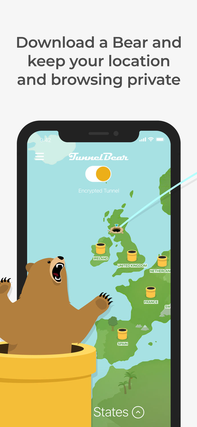 1位:TunnelBear VPN 【国内・海外でプライバシー保護をしたい方はコレ!】