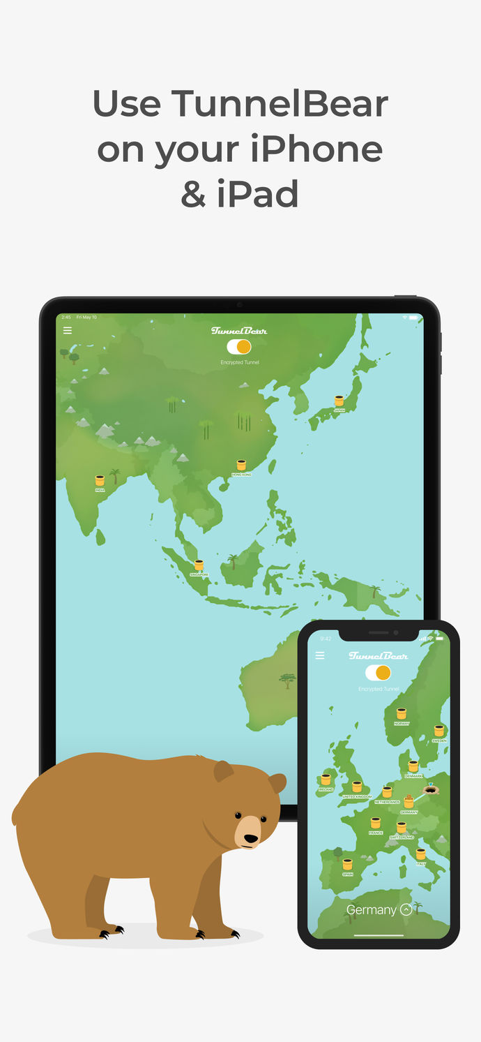 オンラインでのプライバシーを保護をはじめ、WiFiホットスポットのブラウズ中でも安全にブラウズしたいなら、各端末にTunnelBear VPN Freeをダウンロードしてみましょう。TunnelBear VPNは、毎月500MB分まで無料で利用できます!