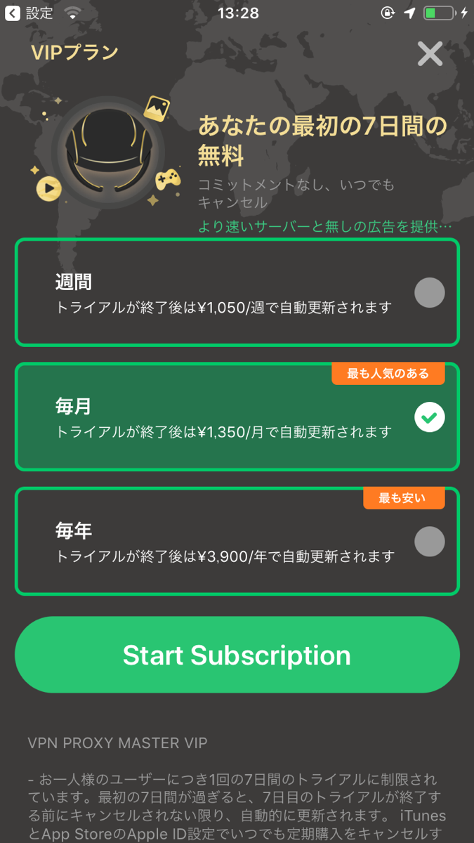 フリープランのほかに、VIPプランといって1週間:$9.99、1ヶ月:$11.99、12ヵ月:$69.99の料金で設定されています。