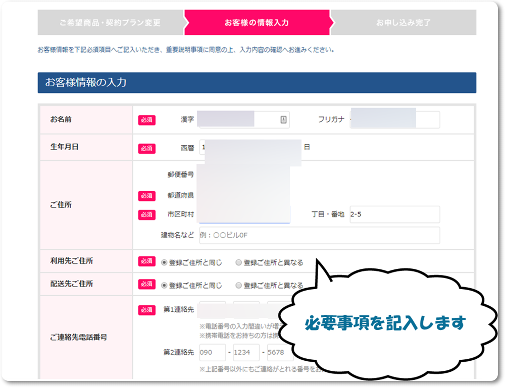こちらには住所や氏名などの必要事項を記入します。