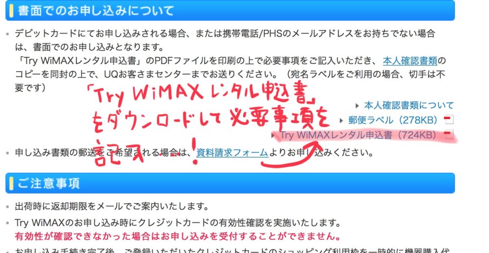 TryWiMAXの申し込み方法:クレジットカードがない場合